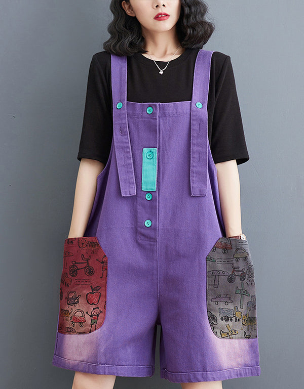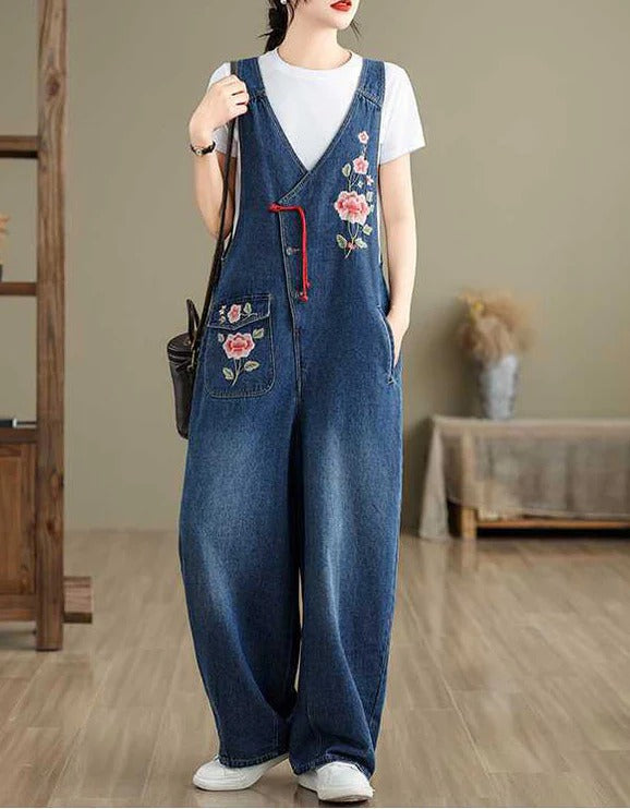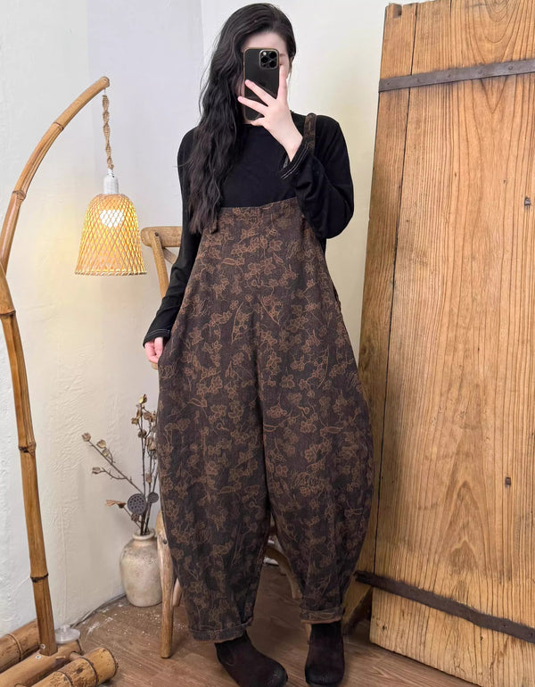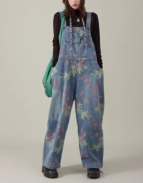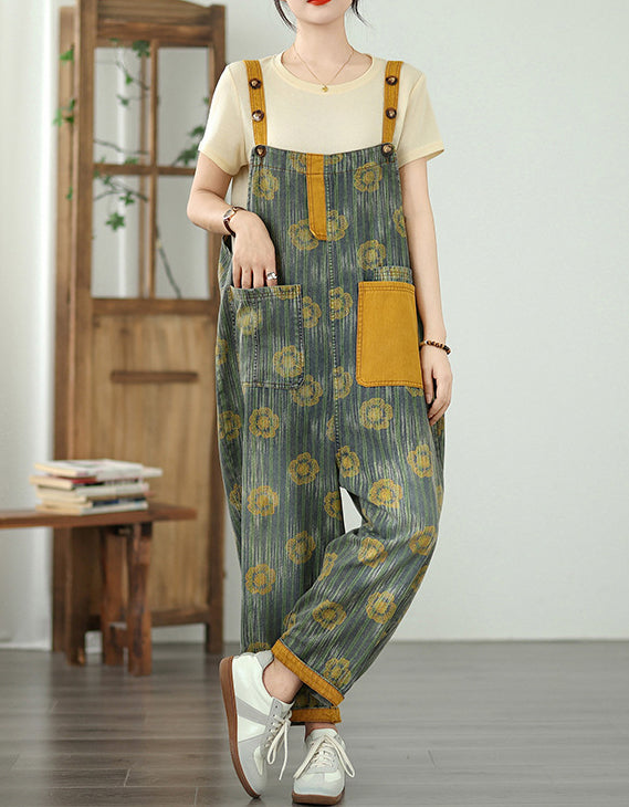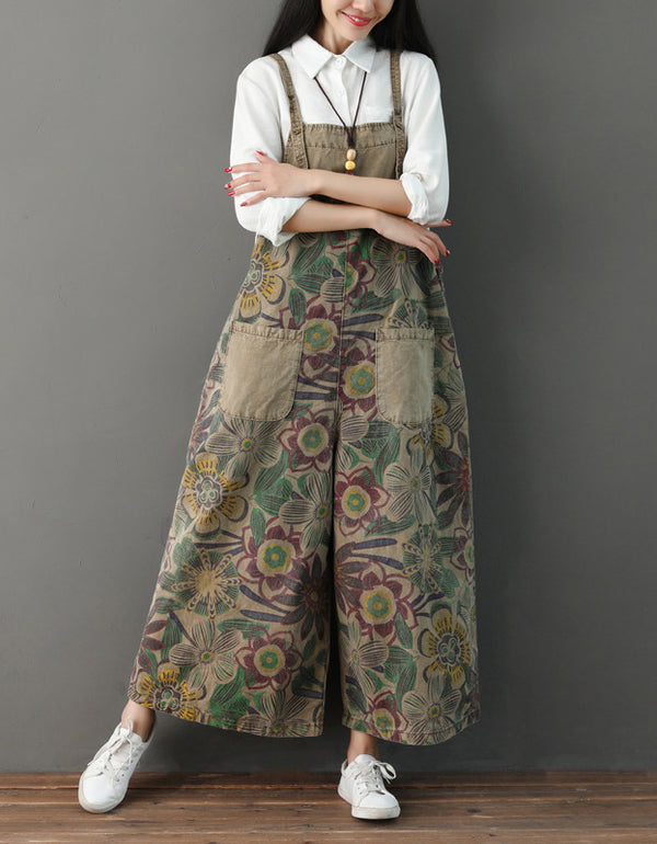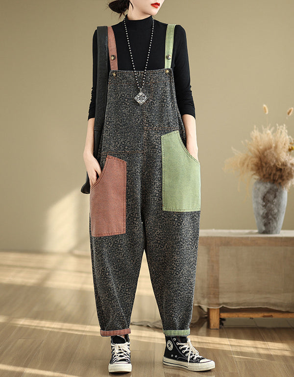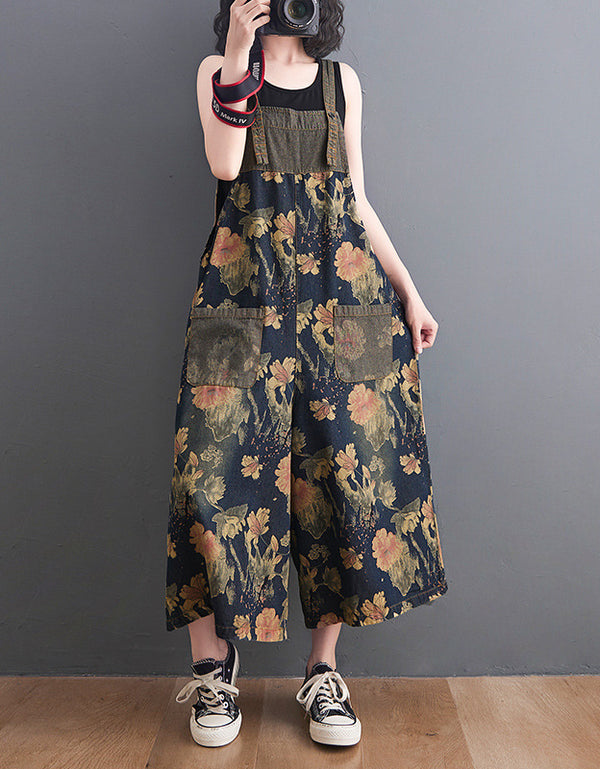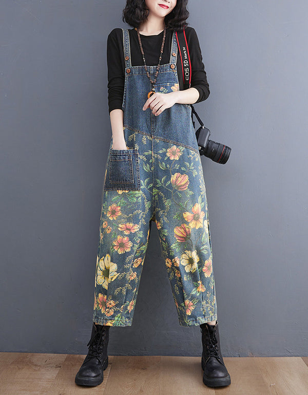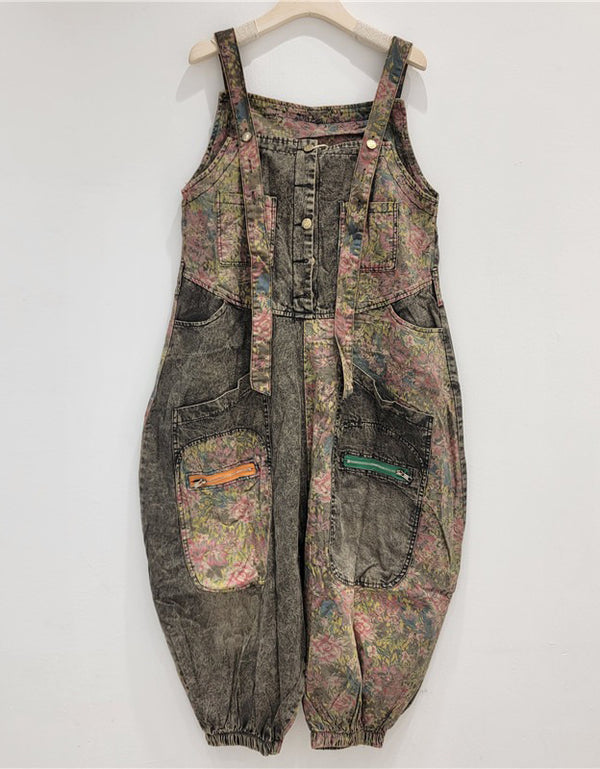 Women's Vintage Floral Patchwork Jumpsuit Overalls