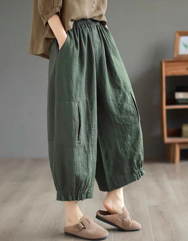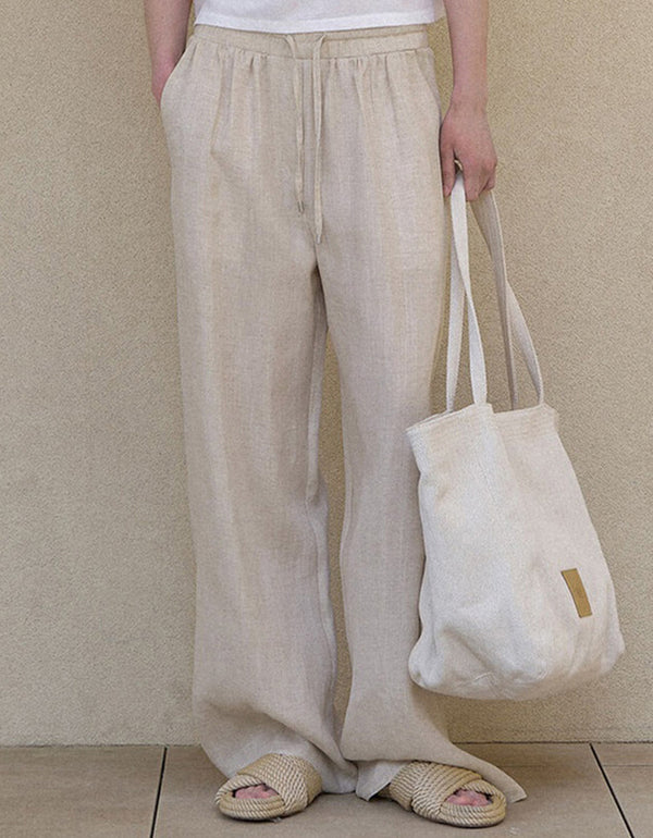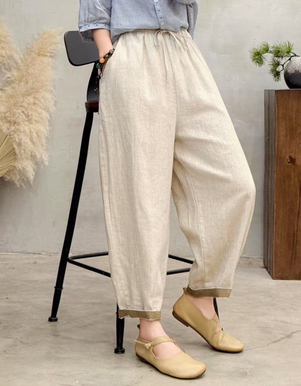 Ethnic-Inspired Loose Fit Wide-Leg Cotton Linen Pants
