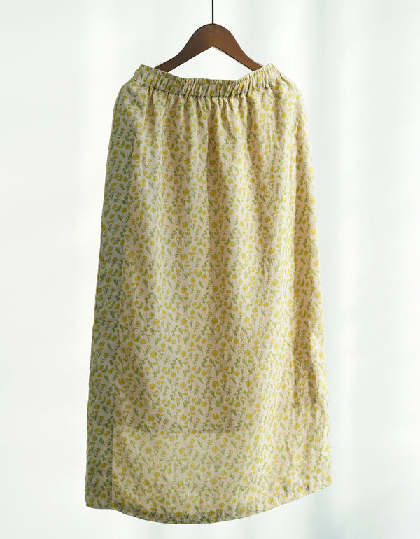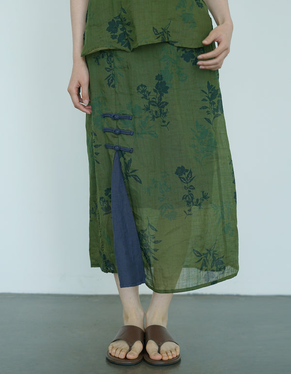 Three-piece Floral Printed Splicing Irregular Linen Skirt