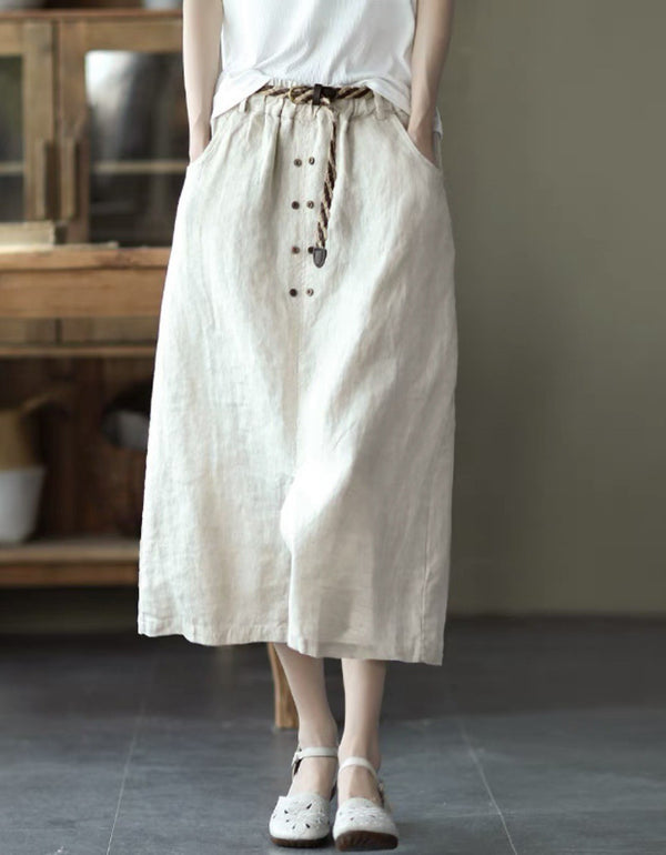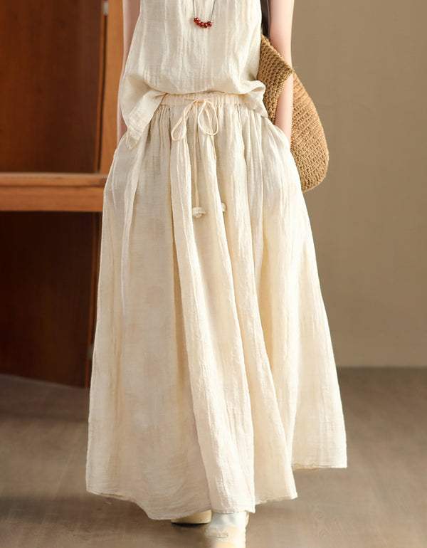 Casual Loose Fit Beige High Waist Linen Maxi Skirt