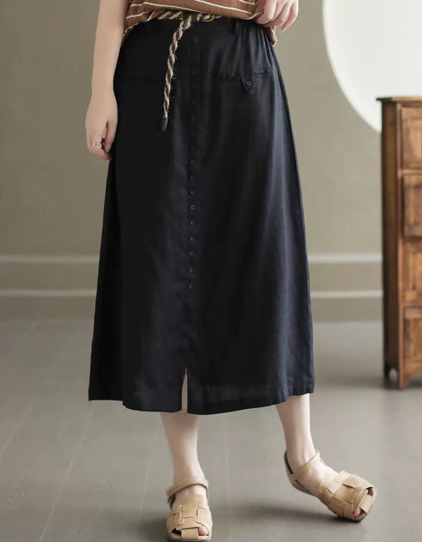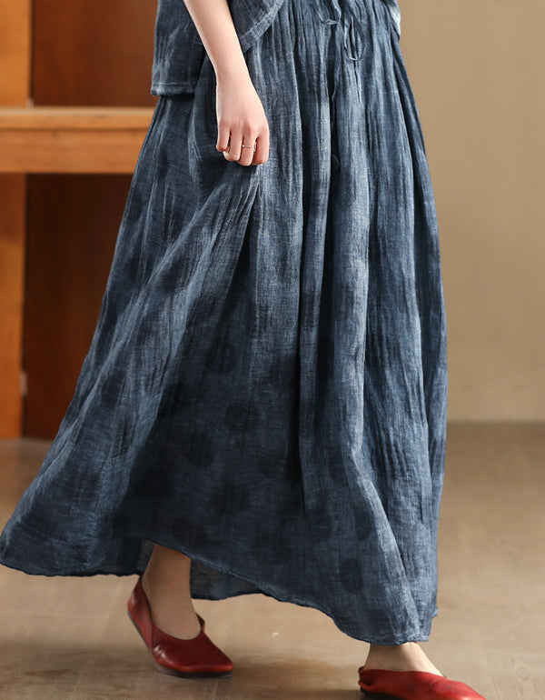 Vintage Casual Loose Fit Navy Blue Linen Maxi Skirt