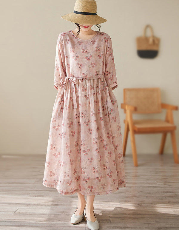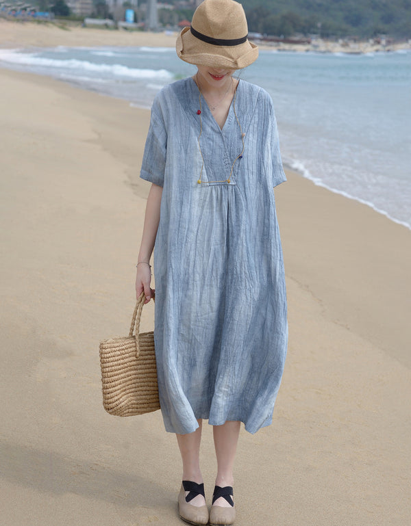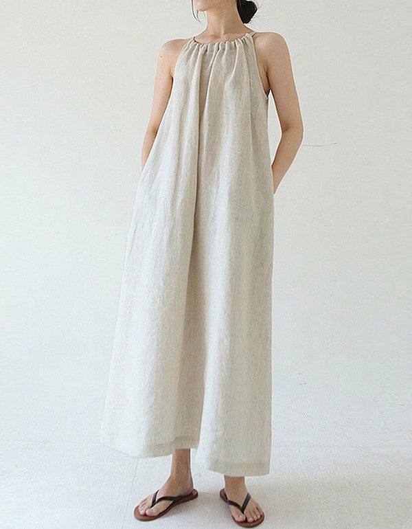 Vintage Comfy Loose-Fit Linen Cotton Maxi Dress