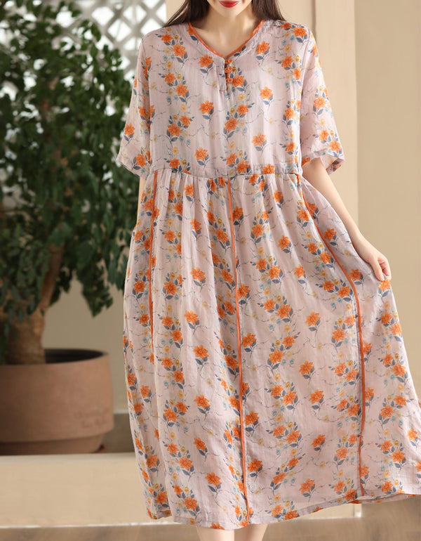 Vintage Floral Oversized Comfy Cotton Linen Maxi Dress