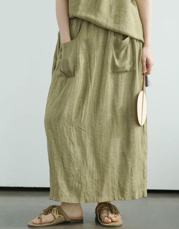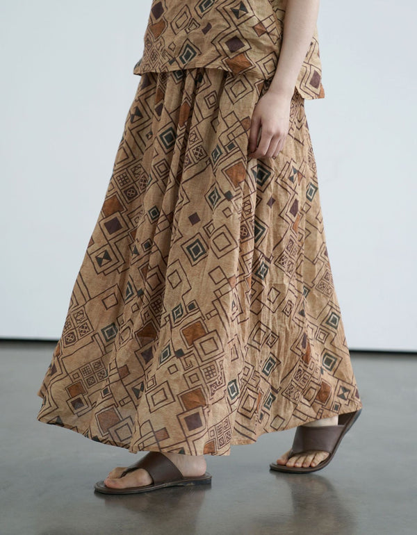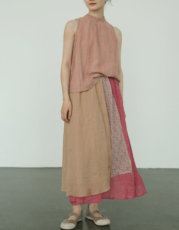 Three-piece Floral Printed Splicing Irregular Linen Skirt