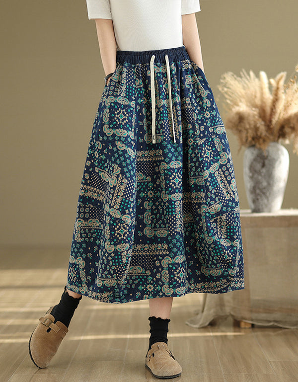 Vintage Red Geometric Cotton Linen Dress
