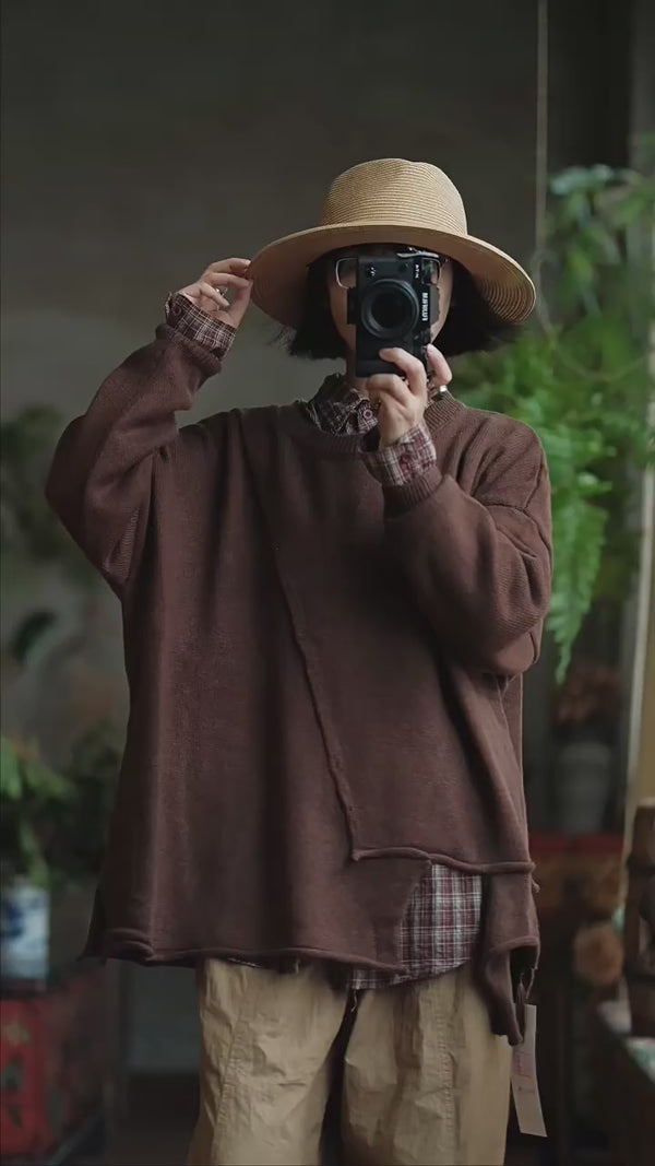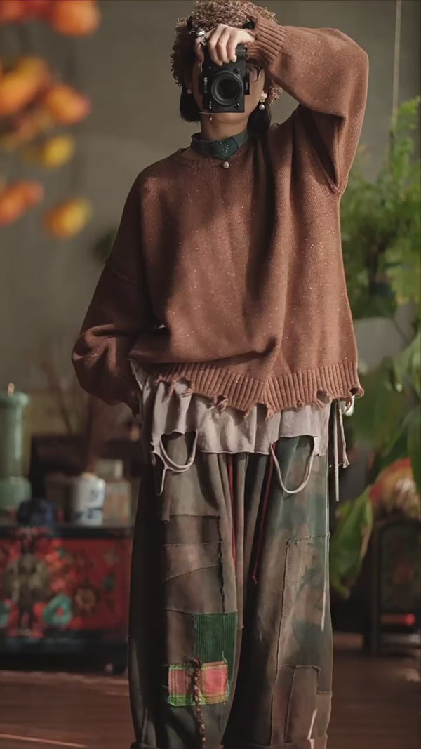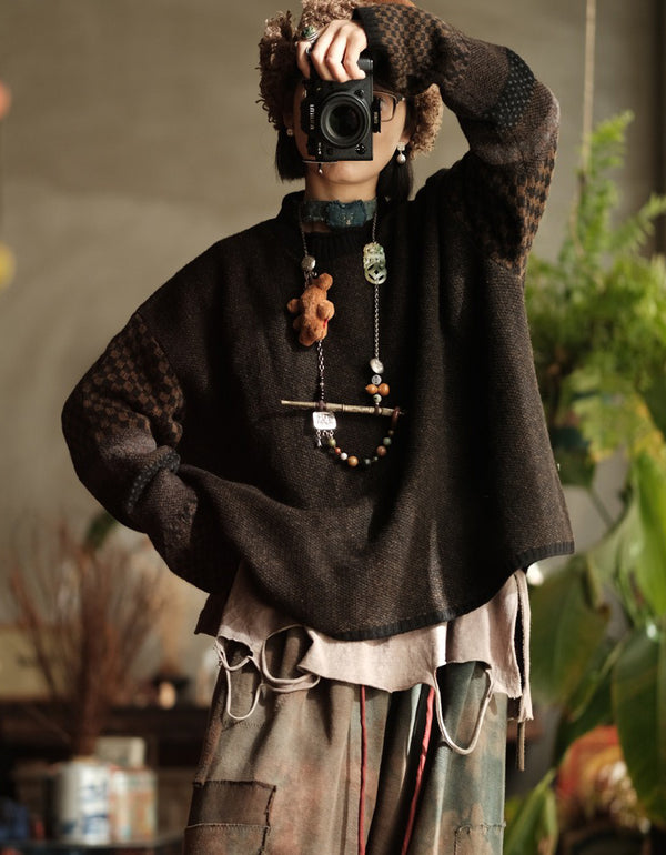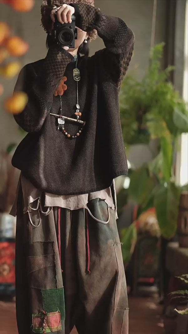 Women's Loose Fit Vintage Patchwork Knit Sweater