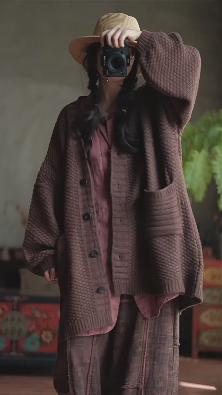 Women's Vintage Handmade Chunky Coffee Knit Vest