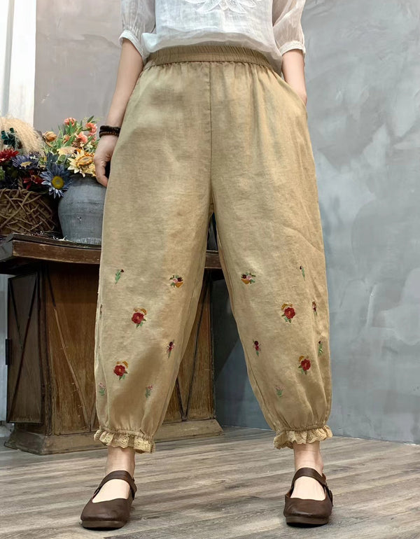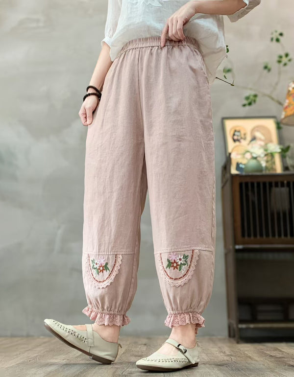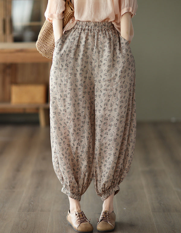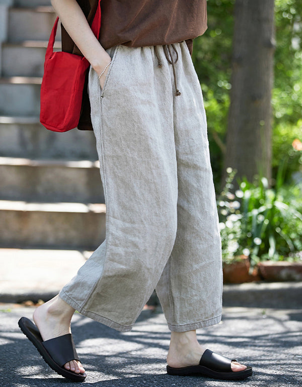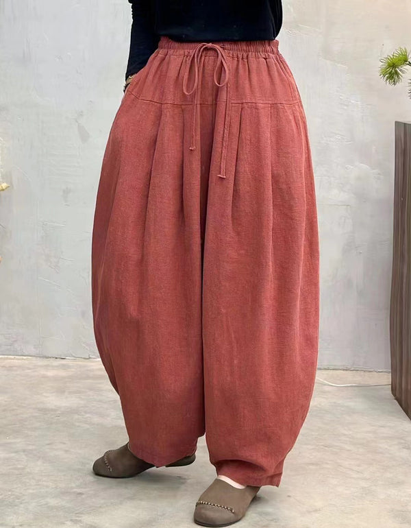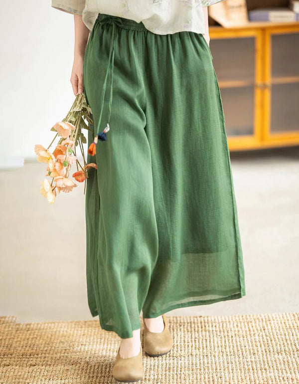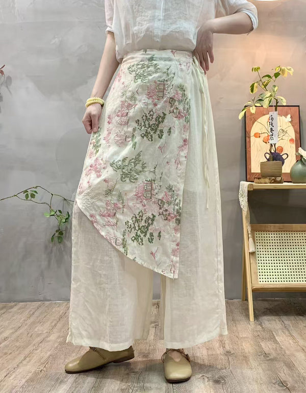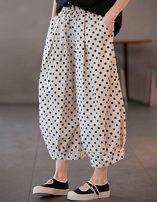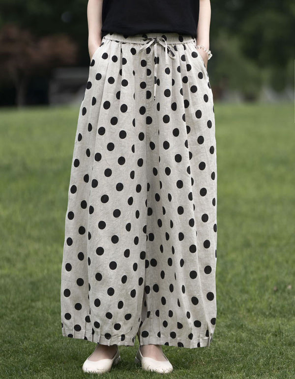 Vintage Polka Dot Cotton Linen Wide Leg Pants