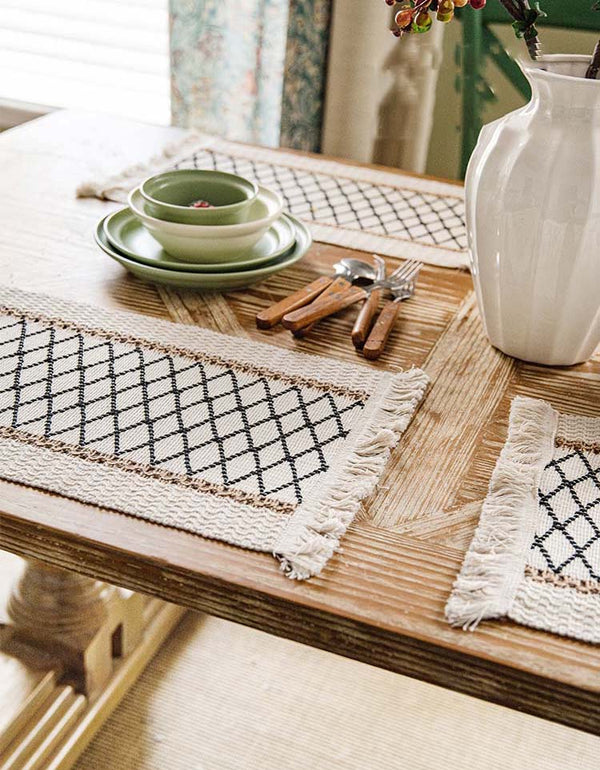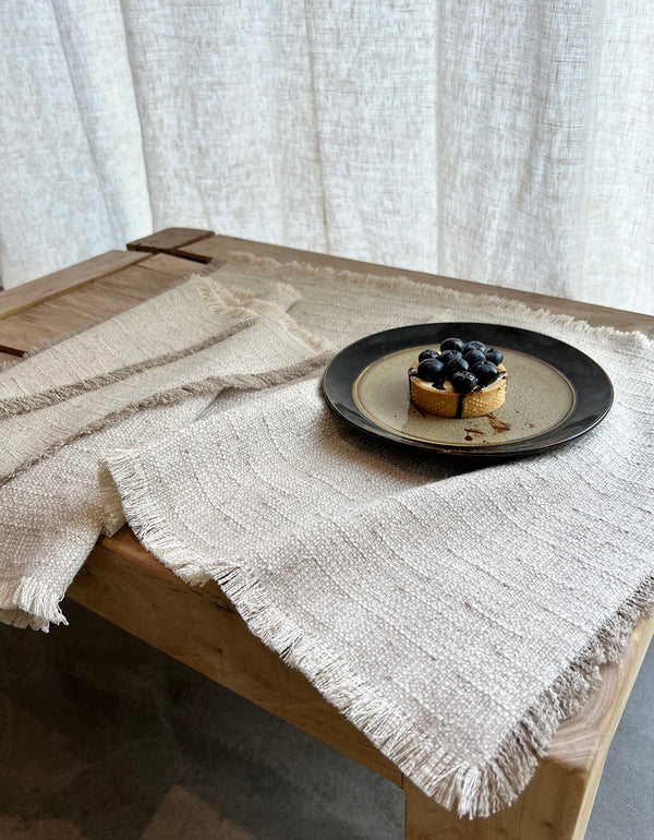 Mantel individual de lino y algodón texturizado con bordes sin rematar
