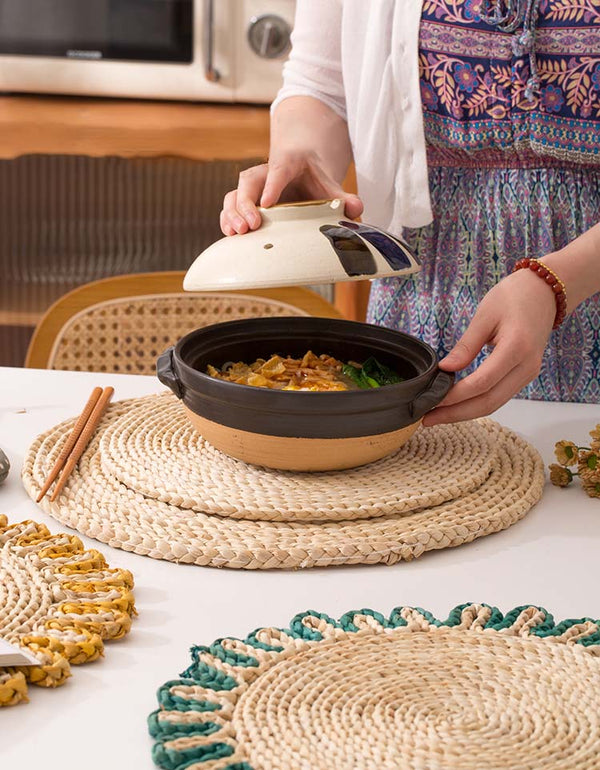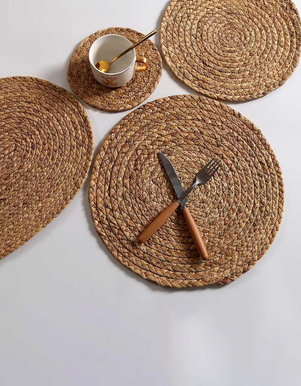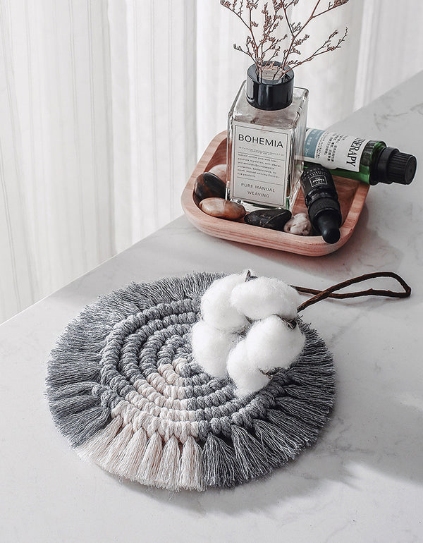 Posavasos de lino y algodón tejidos a mano de estilo bohemio (3 piezas)