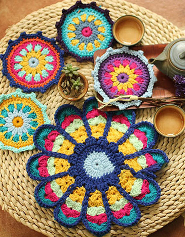 Posavasos individuales con forma de flor de ganchillo hechos a mano (5 piezas)