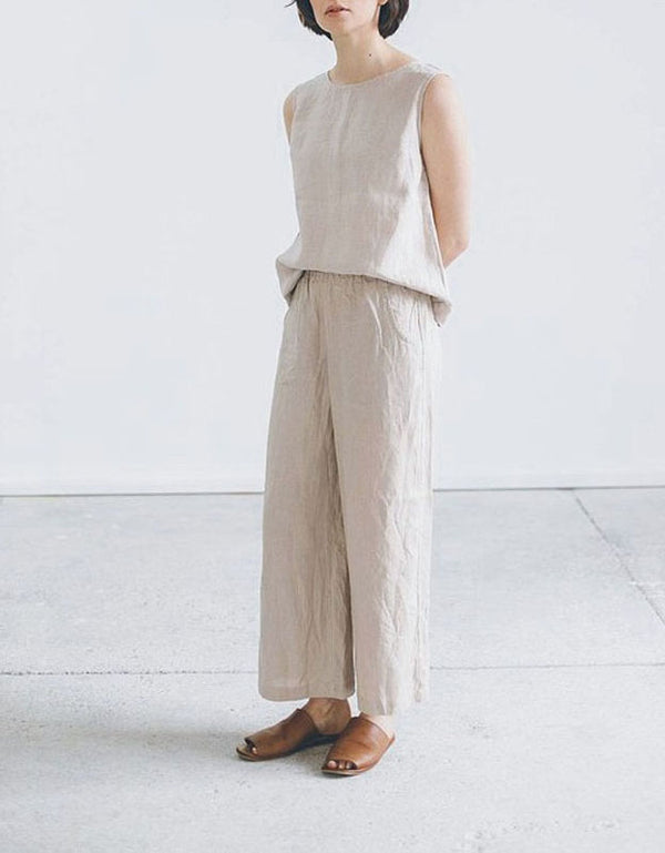 Ethnic-Inspired Loose Fit Wide-Leg Cotton Linen Pants