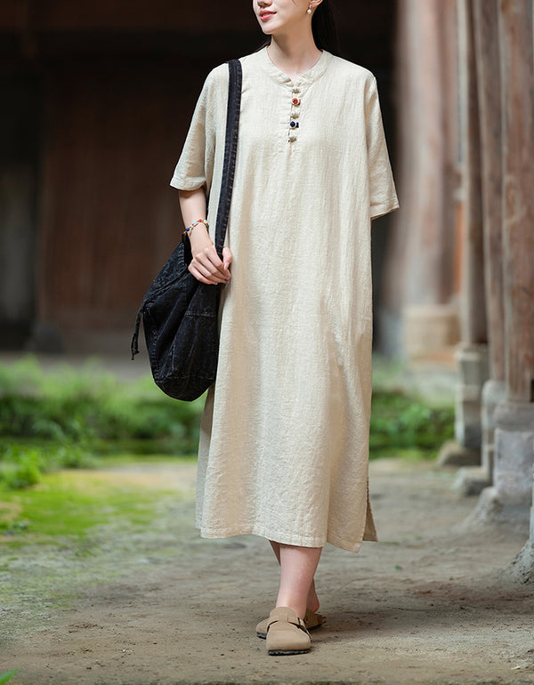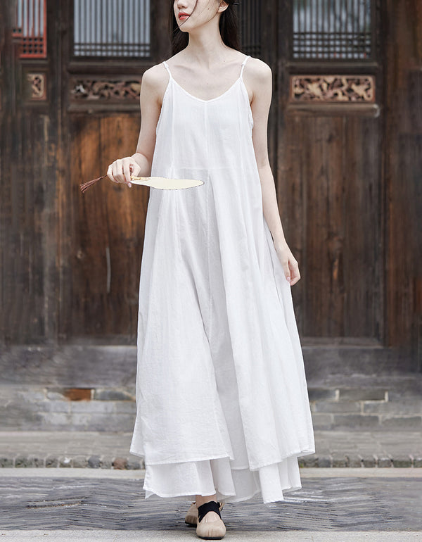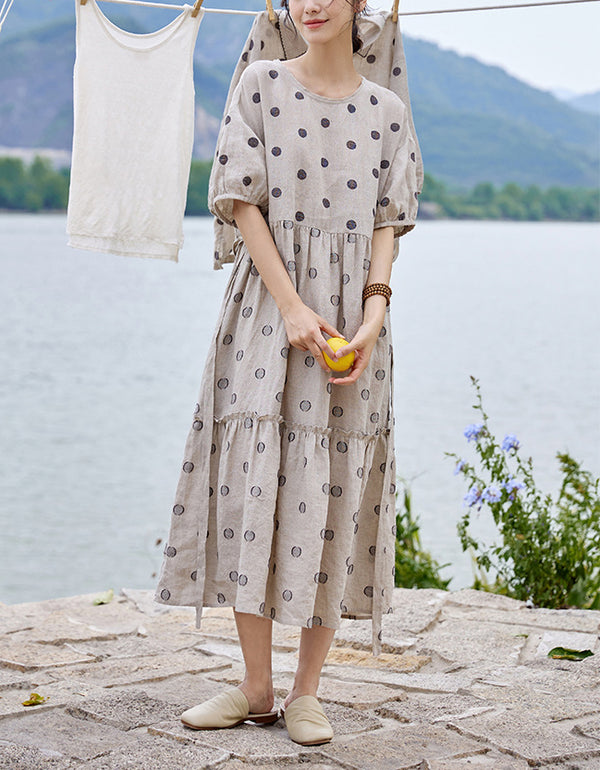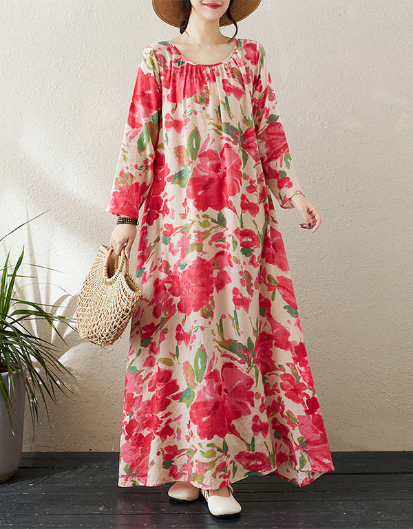 Bohemian Elephant Print Cotton Linen Maxi Dress