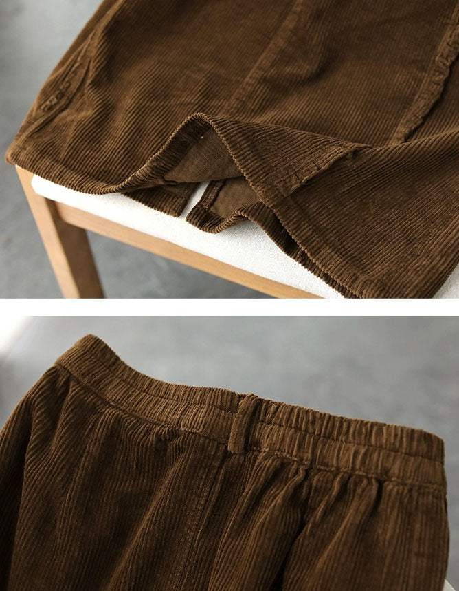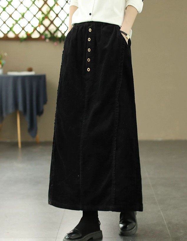Women’s Retro Button Front Corduroy Maxi Skirt
