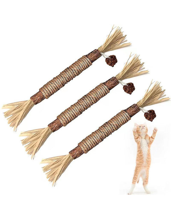 Jouet pour chat en bois naturel nettoyant les dents à l'herbe à chat