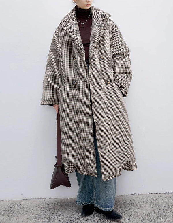 Women’s Winter Loose Classic Houndstooth Long Coat