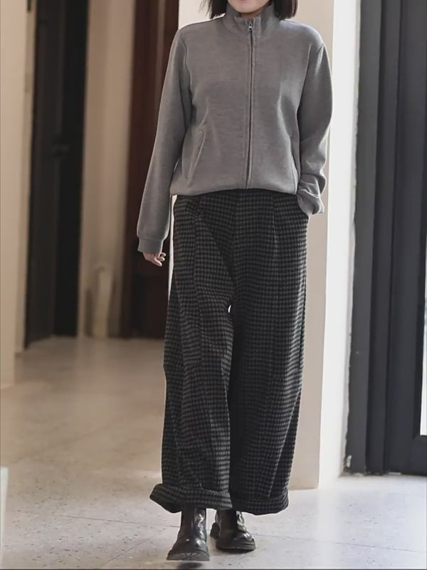 Women Winter Loose Fit Plaid Wide-Leg Trousers