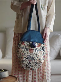 Vintage Floral Canvas Shoulder Bag for Women