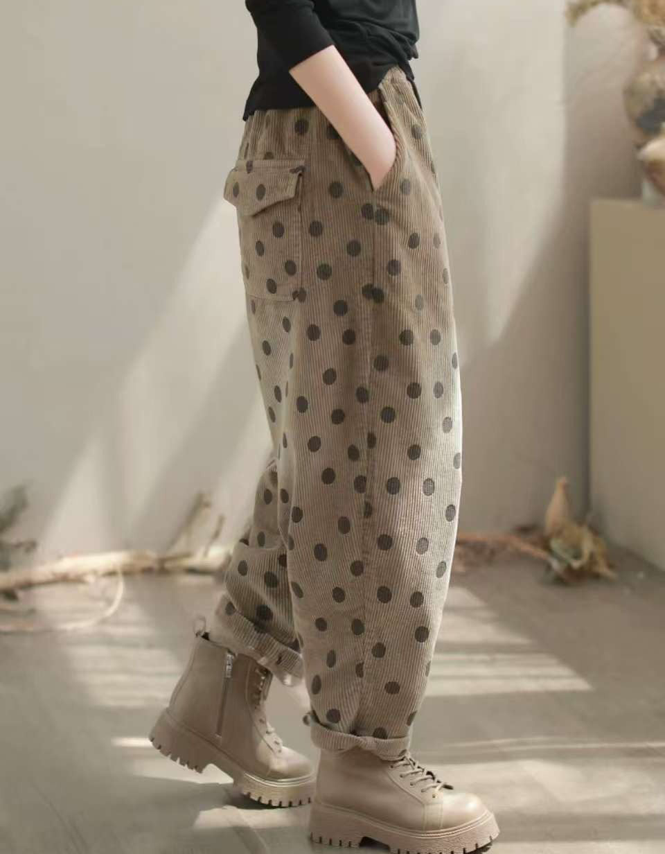 Relaxed Fit Polka Dot Corduroy Casual Pants for Women