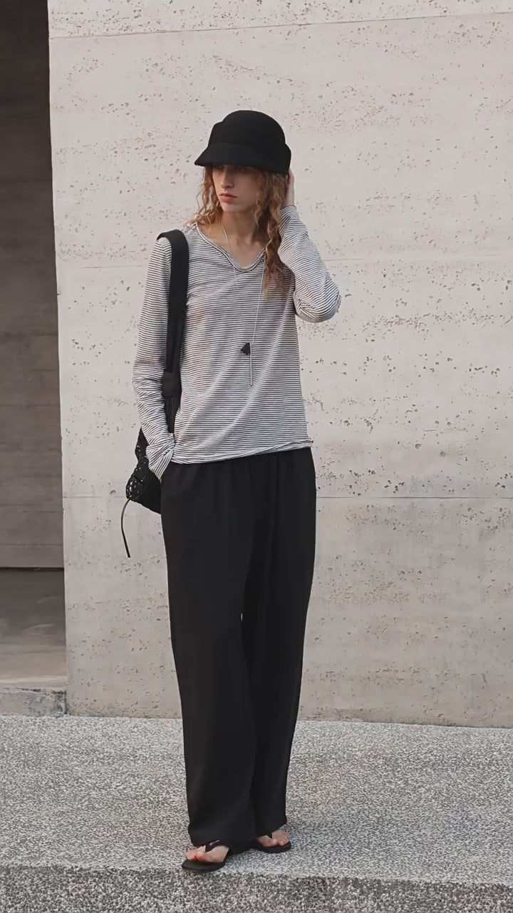 Vintage Casual Striped Long Sleeve Blouse for Women