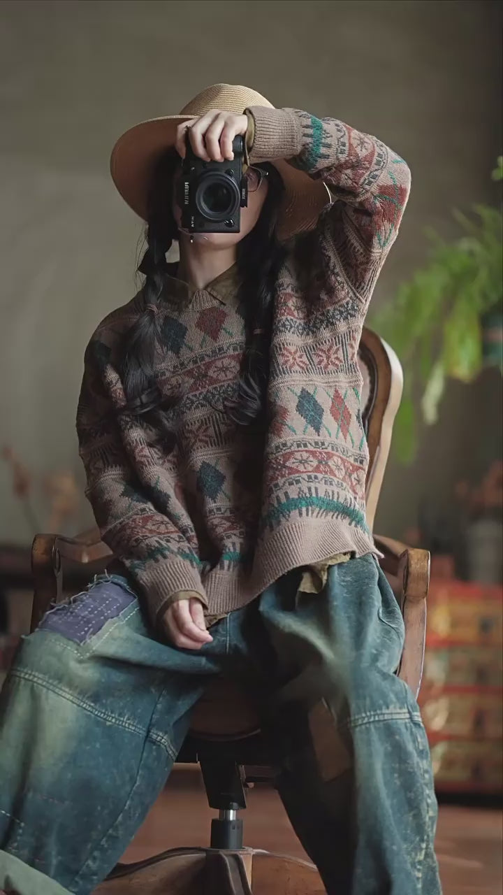 Women’s Vintage Geometric Pattern Oversized Knit Sweater