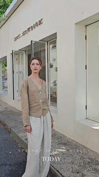 Women Spring Loose Pure Linen V-Neck Cardigan Blouse