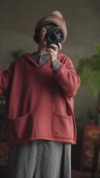 Women's Casual Vintage Rust Orange Knit Hoodie Sweater
